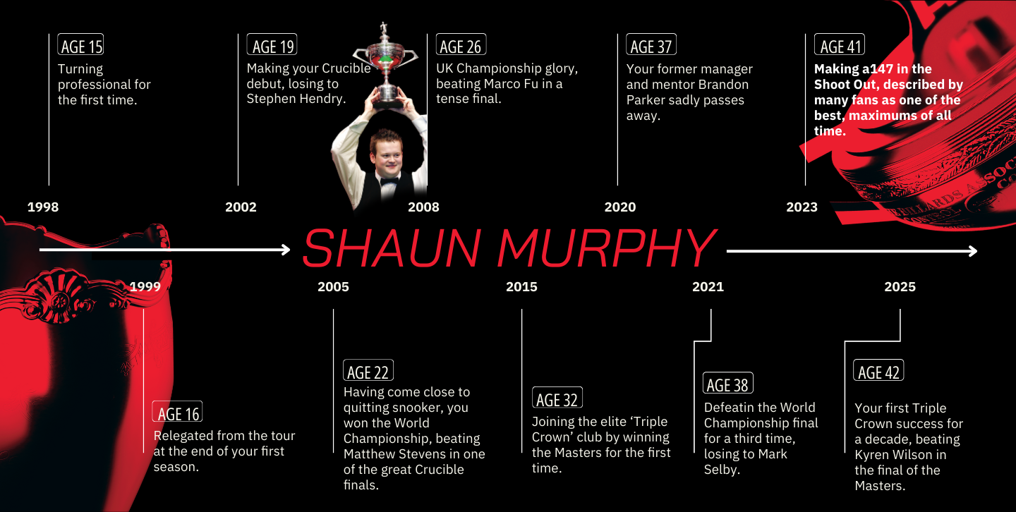 Each story is paired with colours that represent the emotions behind these milestones. Snooker isn’t just played on the table; it’s lived in every moment of victory and challenge.