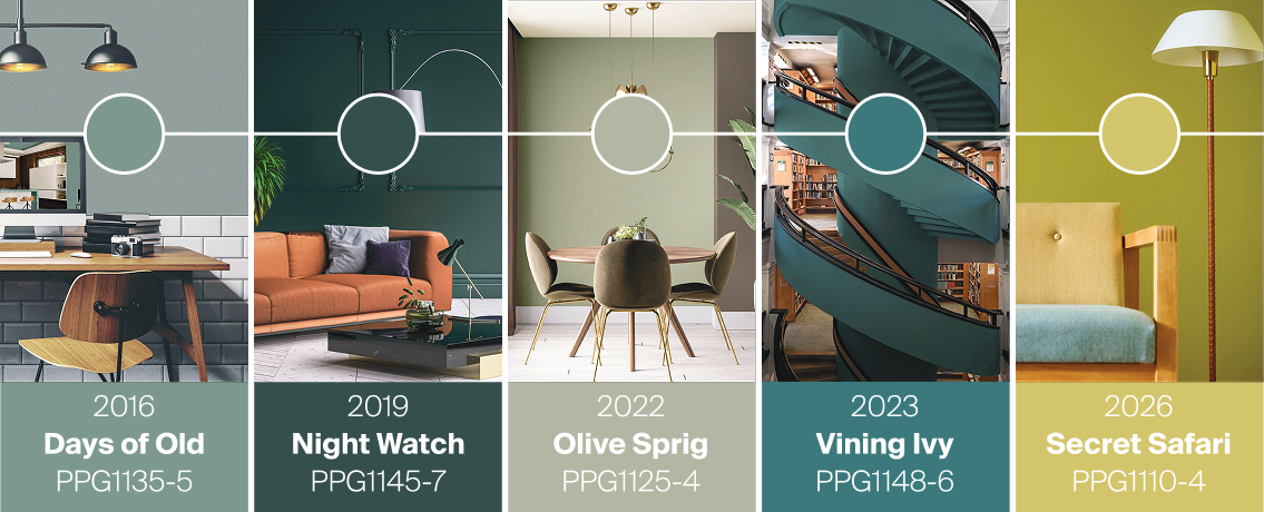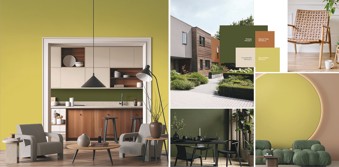 Every year, PPG’s global colour experts select a Colour of the Year to guide architects and designers in creating relevant, future-oriented spaces. For 2026, that honor goes to Secret Safari (PPG1110-4), a nuanced shaded yellow-green that anchors the overarching trend theme called Parallels.