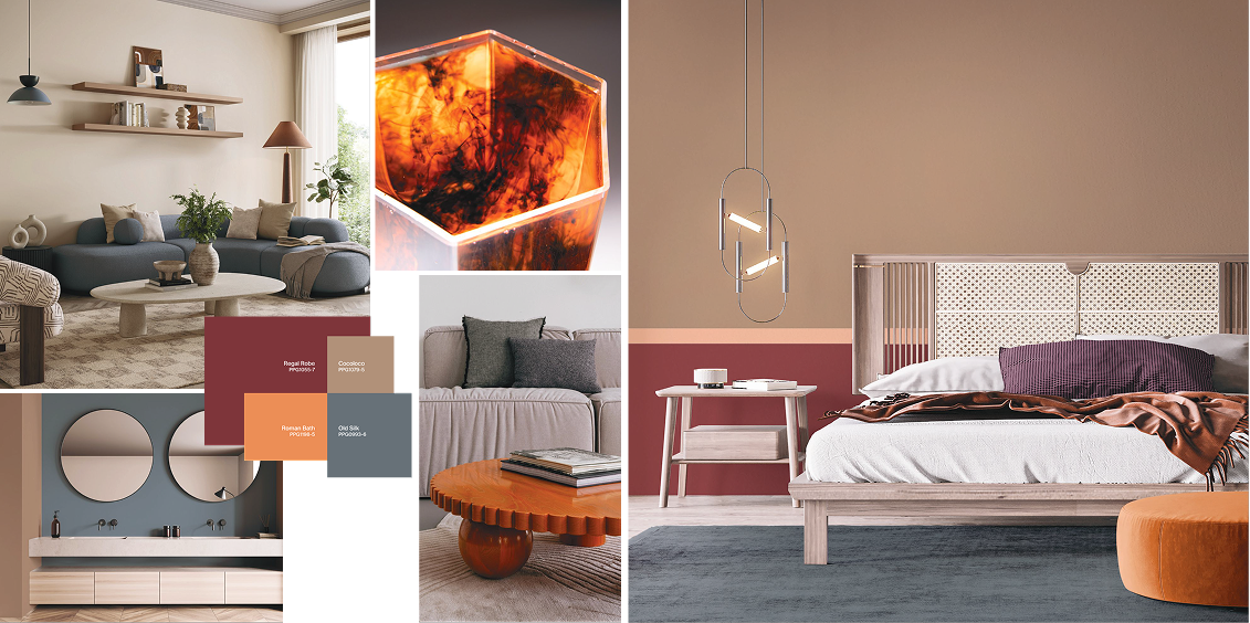 One key Parallels palette is Authentic, which embodies a return to essential, lasting values in design. This trend celebrates honesty in materials and craftsmanship, favouring high-quality, tactile finishes and comforting colours that evoke timeless elegance. Grounded, nostalgic hues – yellow-greens, warm neutrals, earthy browns, organic greens, even deep chestnut tones – define the Authentic palette. Together these colours create a sense of natural balance and enveloping warmth in interiors, encouraging spaces of comfort and familiarity.