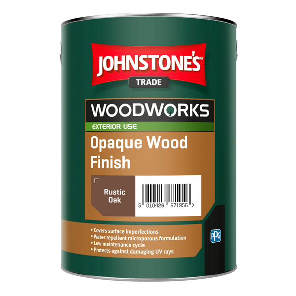 Johnstone’s Trade Woodworks Opaque Wood Finish is a premium quality, low maintenance, alkyd resin based wood coating for exterior use. It provides a mid sheen, opaque, microporous coating designed to protect from water, reduce blistering, cracking and peeling, and resist UV attack. Suitable for use on rough sawn exterior timber surfaces such as fences, gates and cladding.To ensure maximum protection on new, bare and untreated wood first apply a suitable wood preserver.