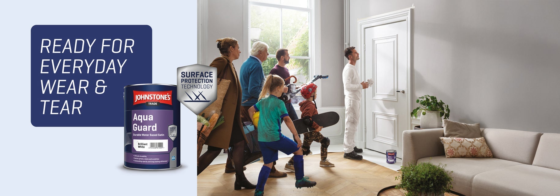 It’s not just about durability though, Johnstone’s Trade Aqua Guard has advanced application qualities which extend working time and covering power coupled with long-lasting whiteness.
