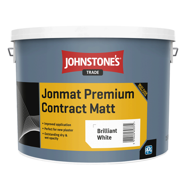 Johnstone's Trade Jonmat Premium Contract Matt paint is a high-quality contract matt emulsion. It has outstanding dry and wet opacity on interior walls and ceilings, leaving a permeable, breathable finish. Ideal for new plaster.